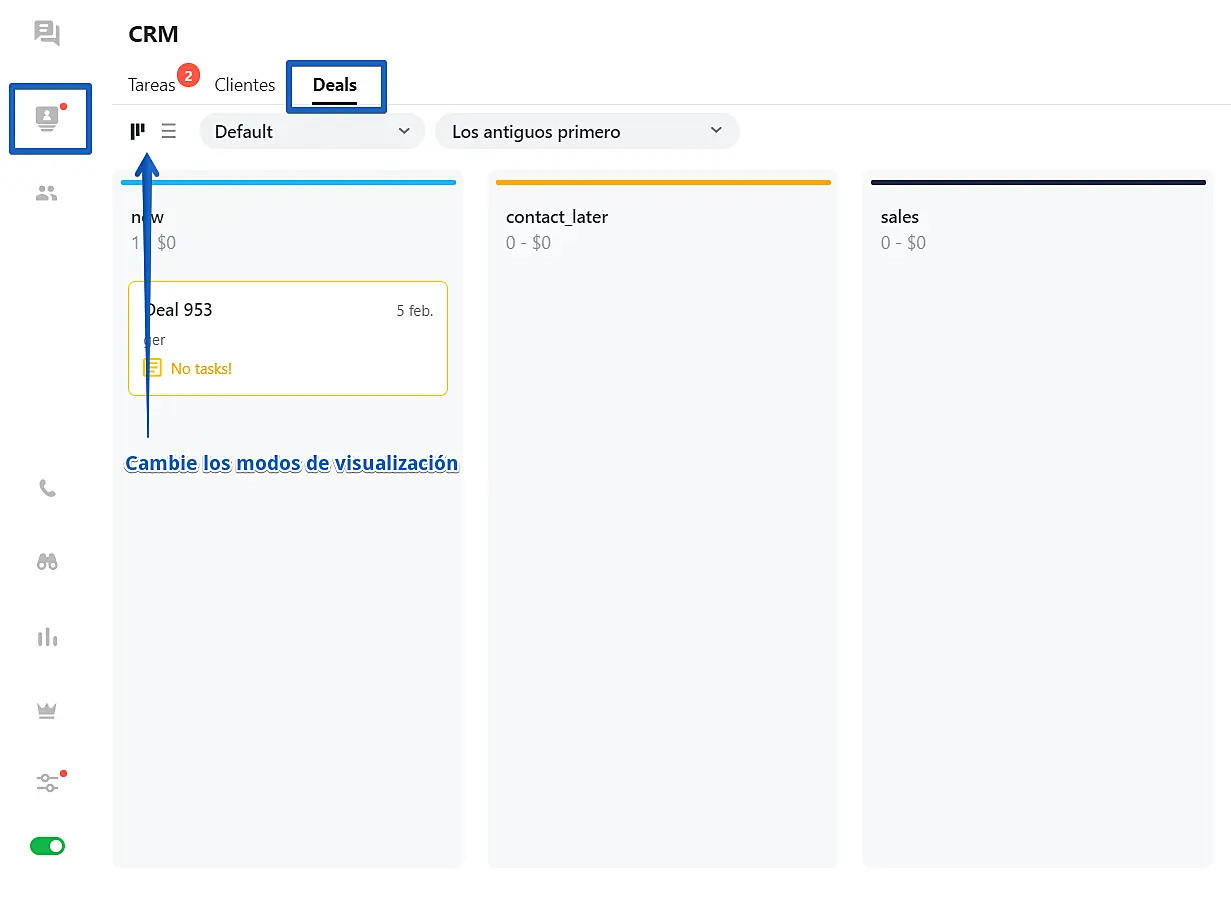 Ahora puede crear tratos en JivoChat y administrar sus prospectos a través de un embudo de ventas. Además, podrá asignar tareas y tratos. Estas herramientas pueden ayudarle a visualizar el proceso de ventas, organizar la atención al cliente de manera efectiva y ahorrar tiempo en su flujo de trabajo.