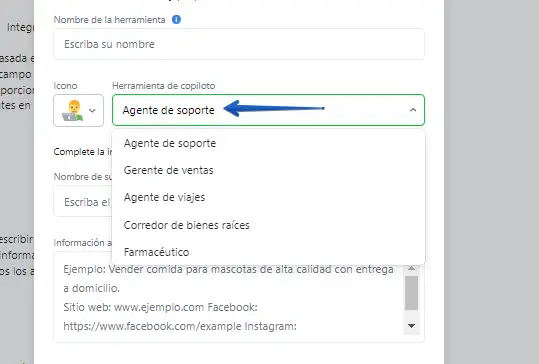 - Habilidad de piloto automático de IA: seleccione de la lista el rol en nombre del cual responderá el asistente