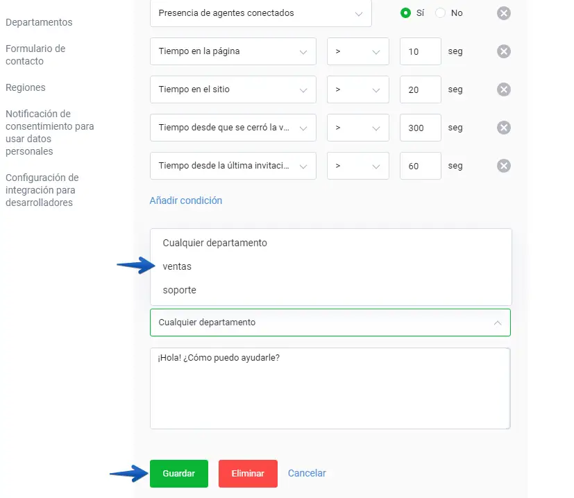 ¡Listo! Ahora la invitación proactiva aparecerá cuando los agentes de estos departamentos estén activos.