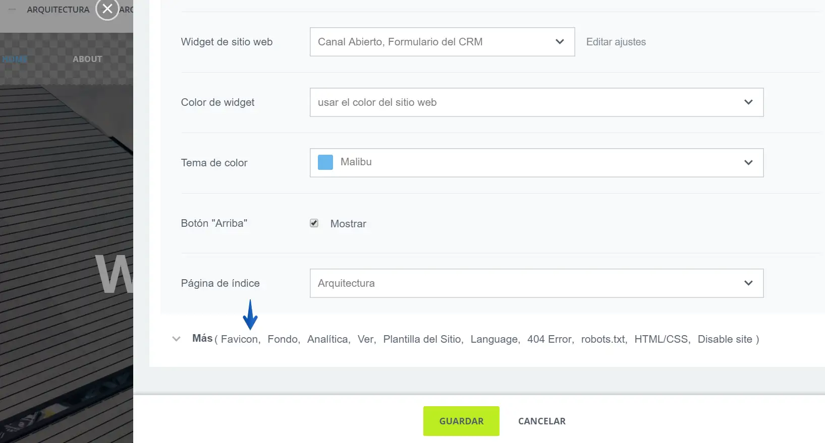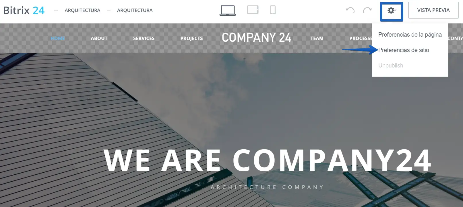 Haga clic en ícono de engranaje para acceder a las configuraciones y haga clic en "Preferencias de sitio"
