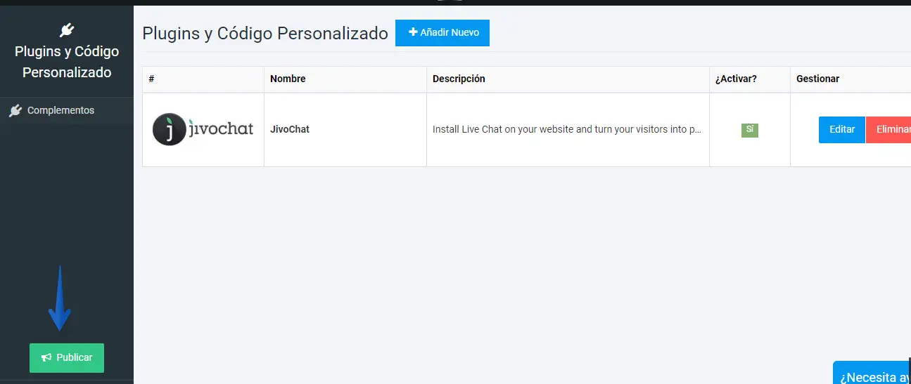 6. No se olvide de Publicar las modificaciones para que se actualice en su sitio web.