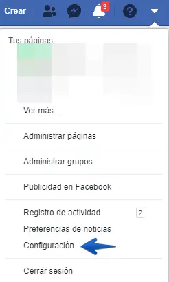 1. Inicie sesión en su cuenta de Facebook, haga clic en la flecha que apunta hacia abajo en la esquina derecha superior y vaya a la "configuración" .