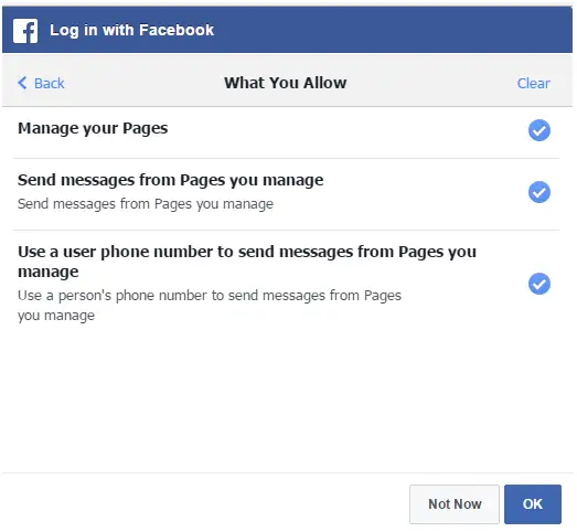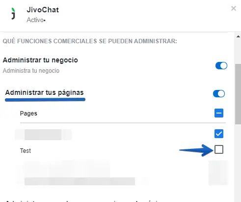 -> Durante el proceso de integración, no le dió permiso a la aplicación de JivoChat para administrar la página que deseea añadir. En este caso, el cuál es el más común de los 3, siga los pasos a continuación para poder integrar la página de Facebook que administra: