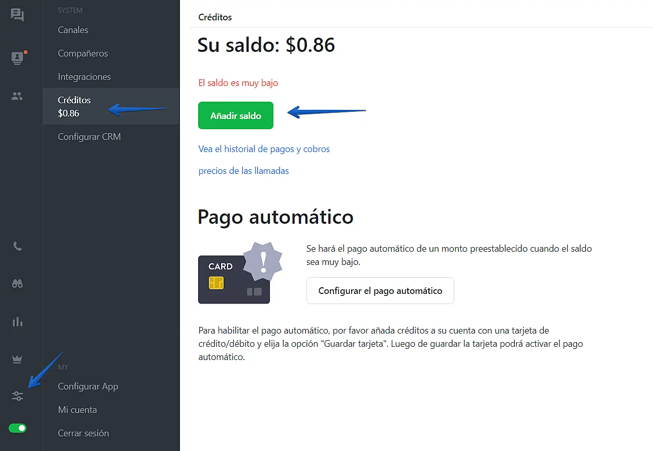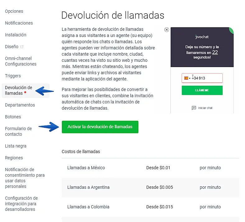 Como activar, configurar y añadir créditos al balance de la función de devolución de llamada