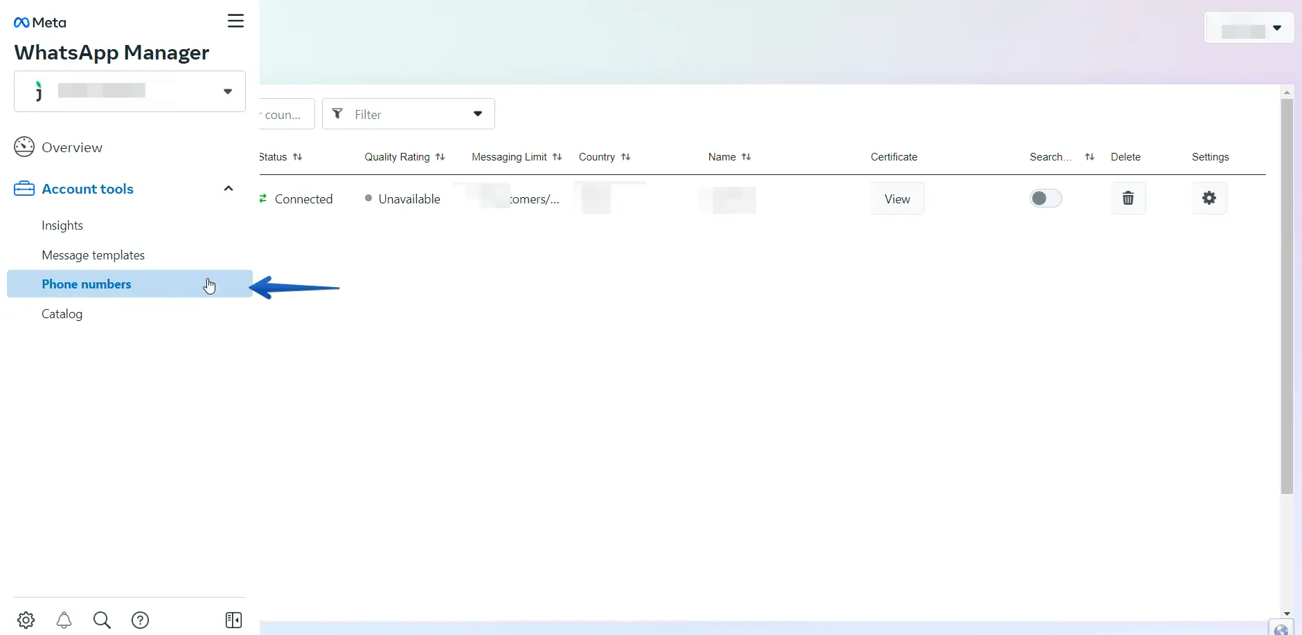 Vaya a WhatsApp manager -> Account tools -> Phone numbers: