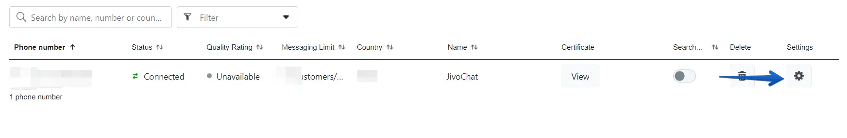 Ahora solo debe hacer clic en el botón de configuración de su número: